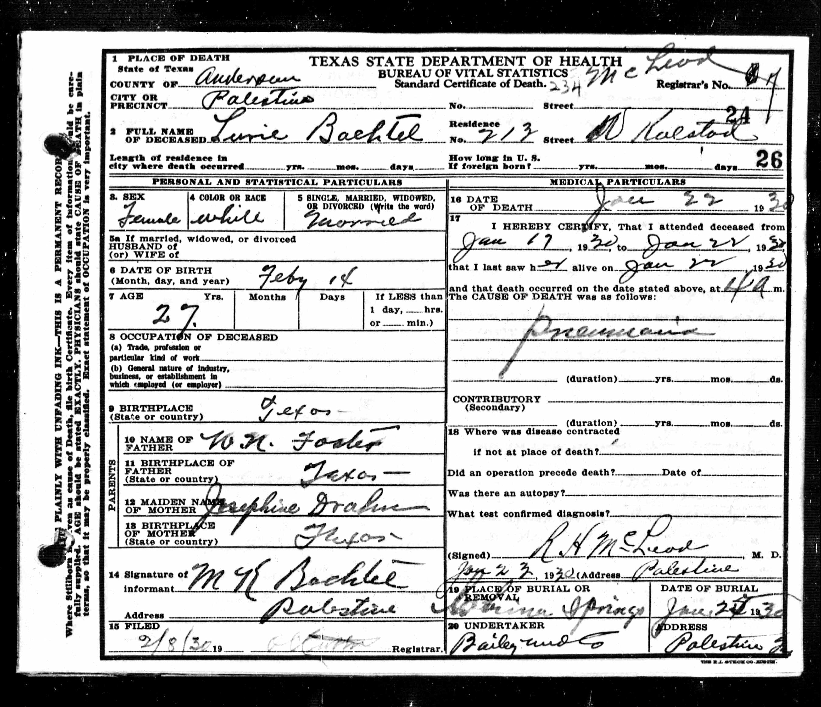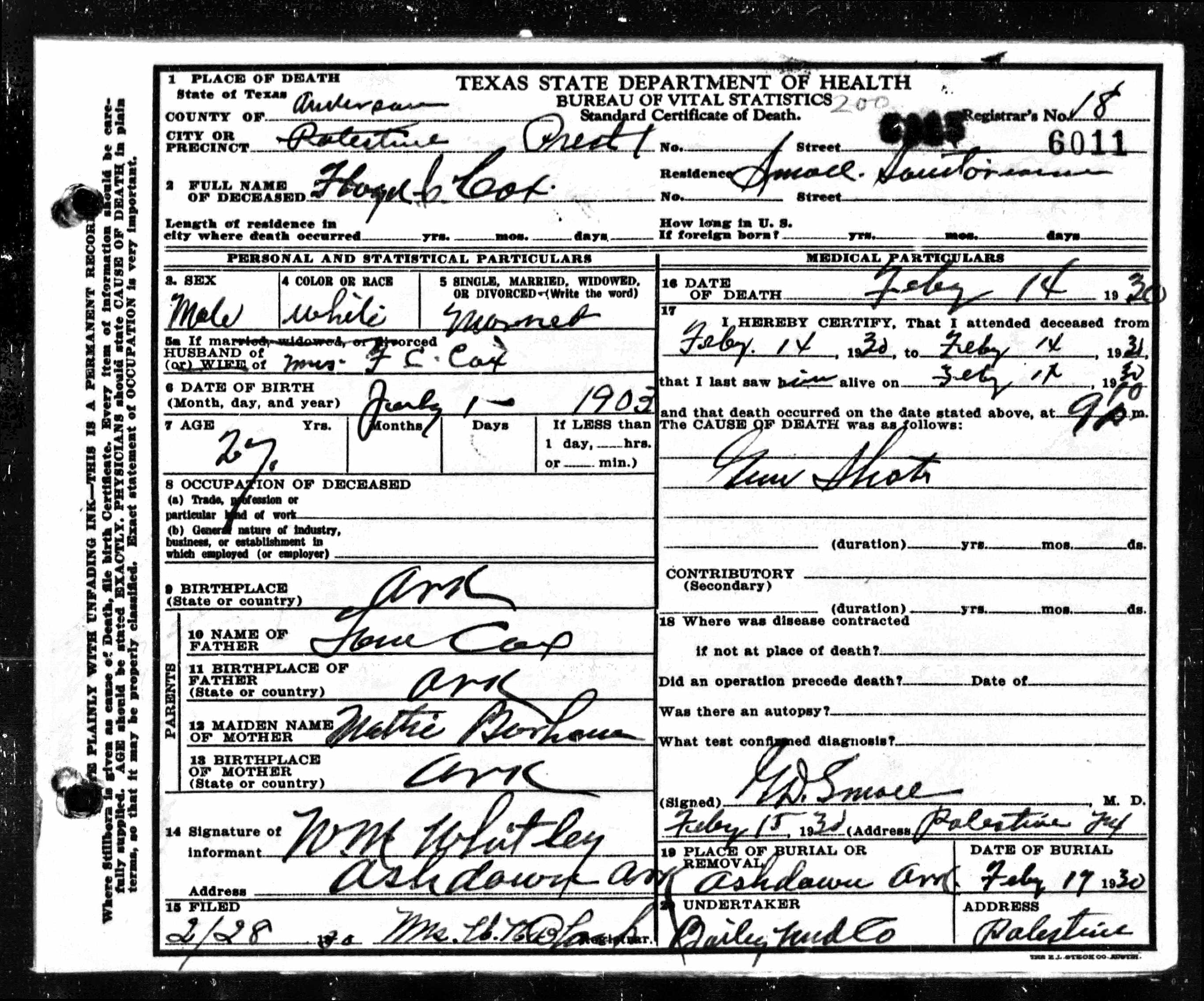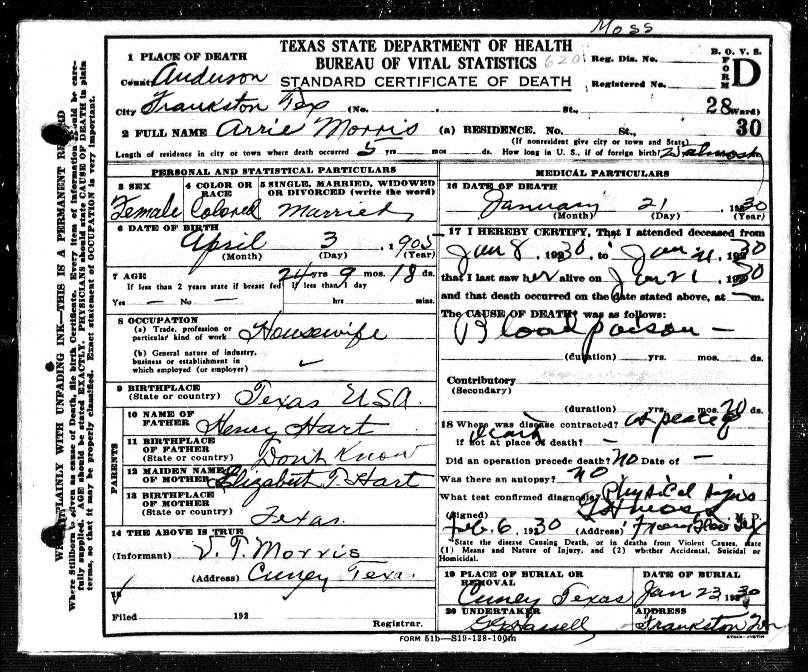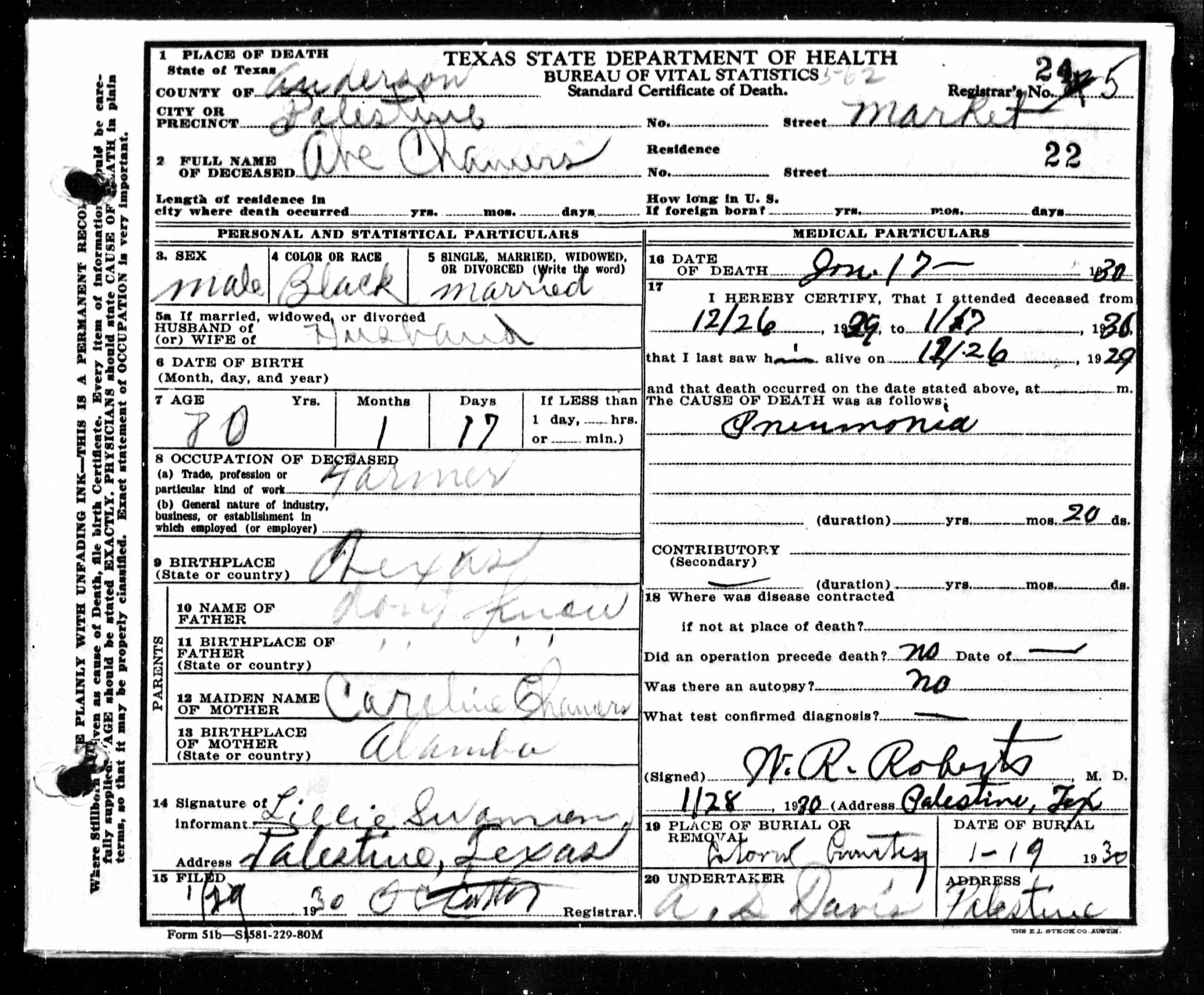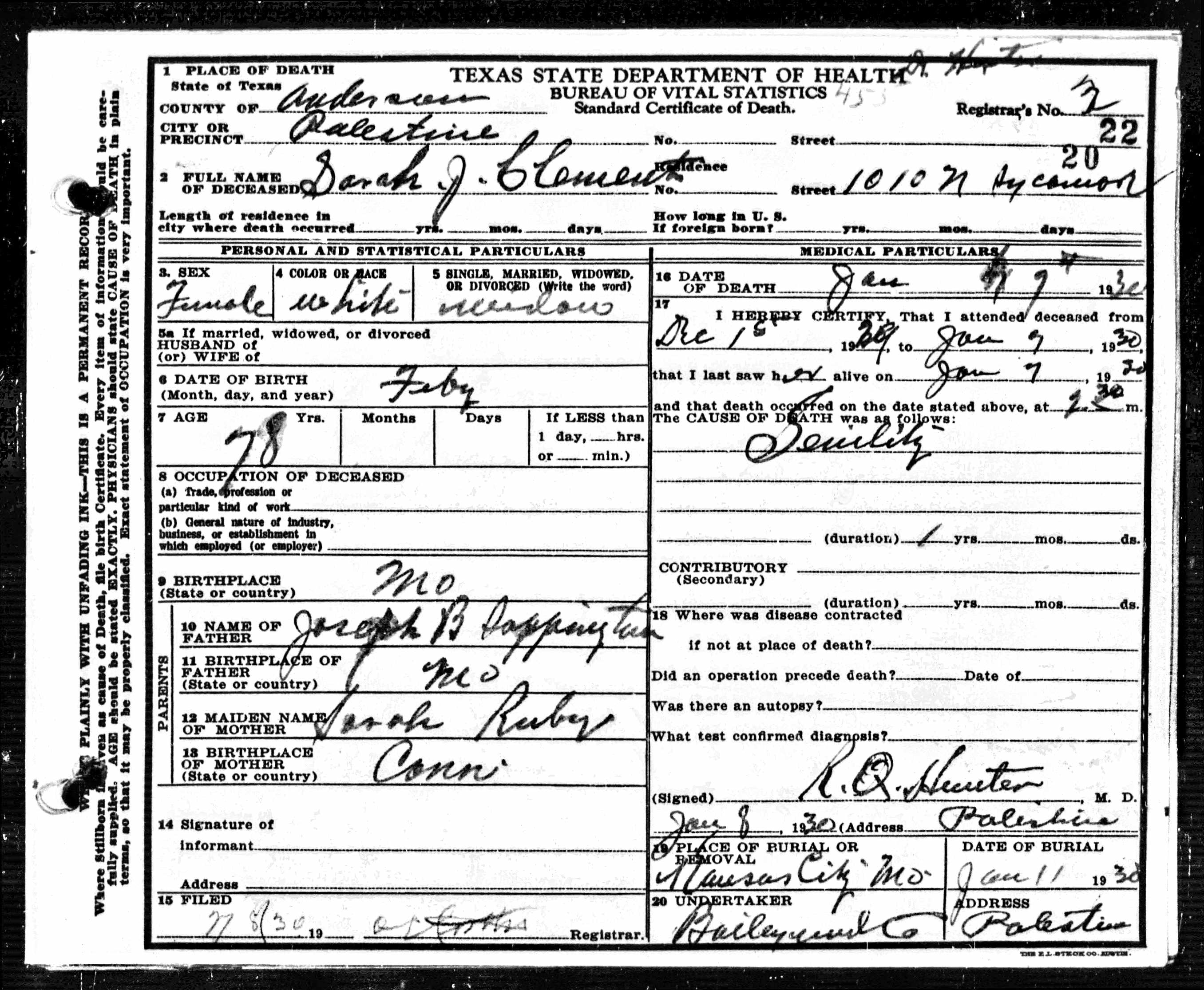 Death certificates for people born, married or died in Anderson County.