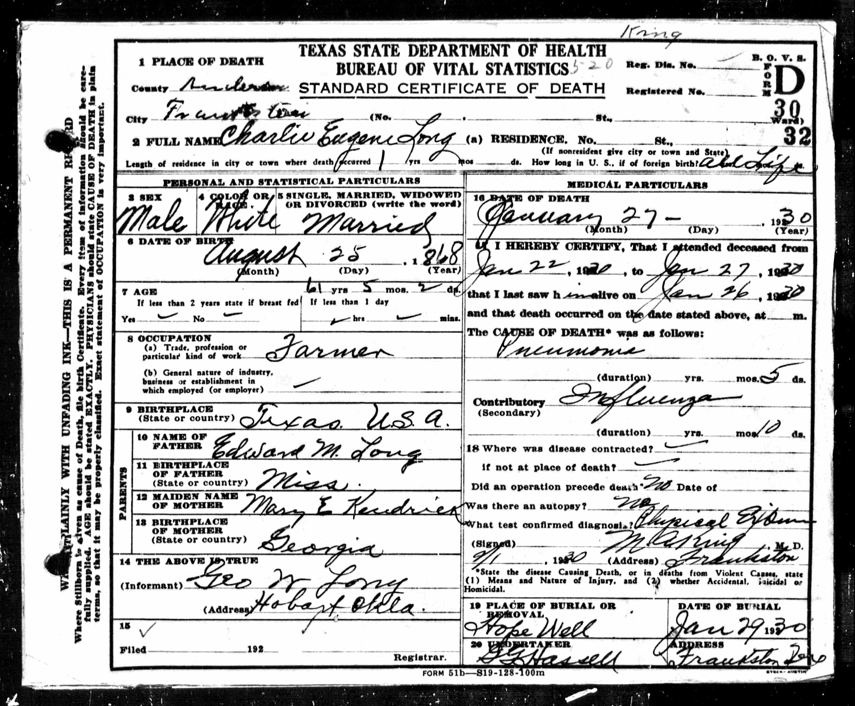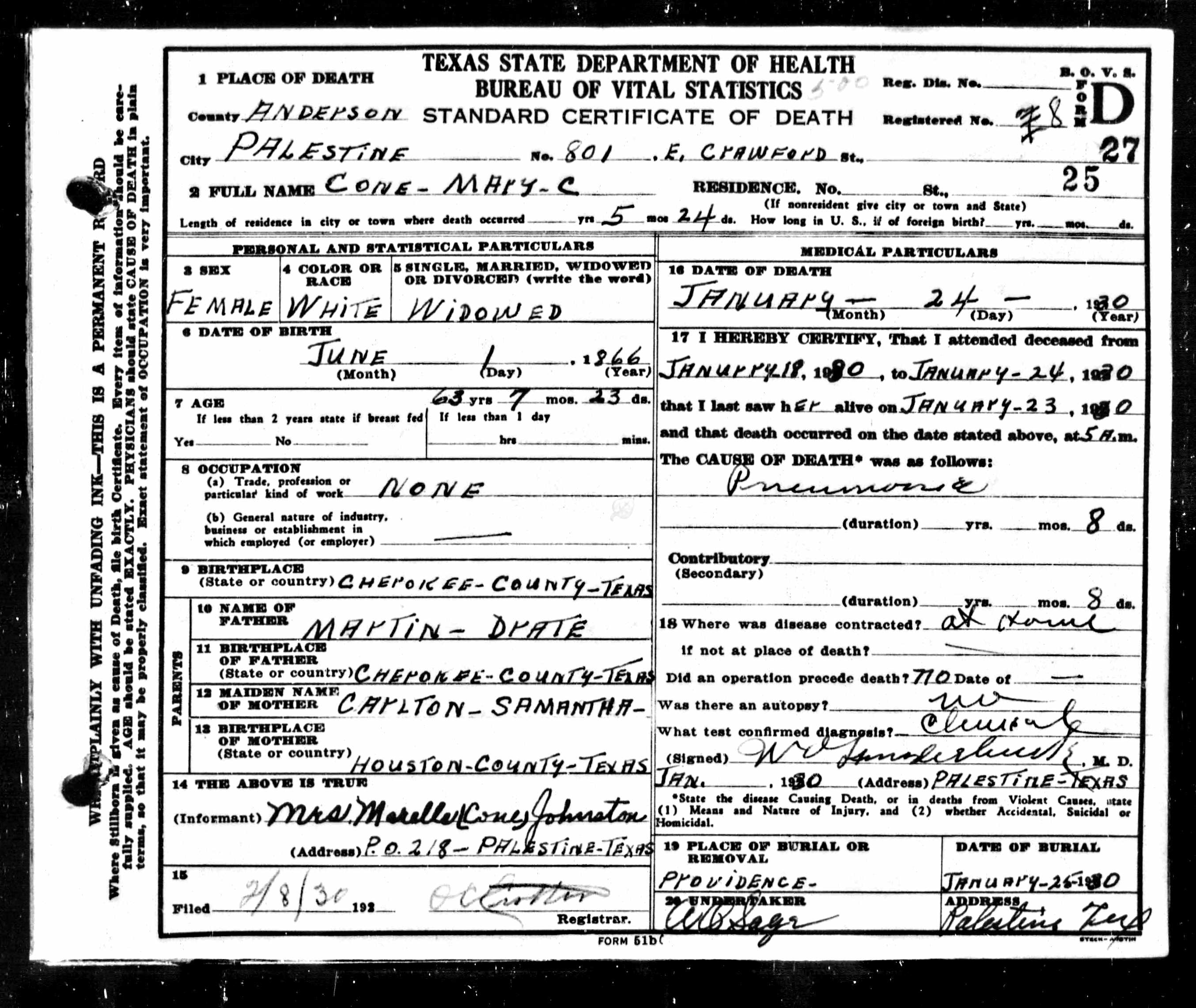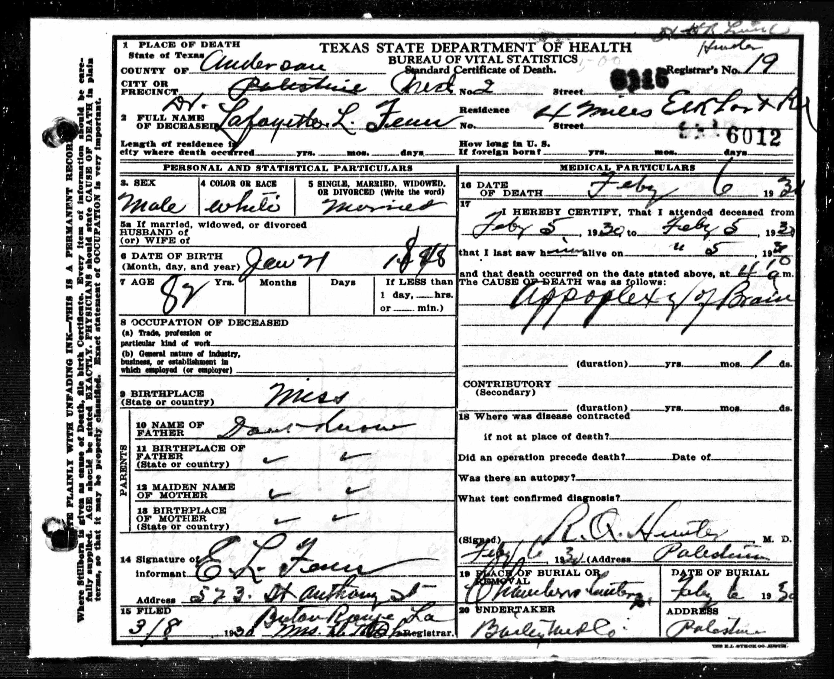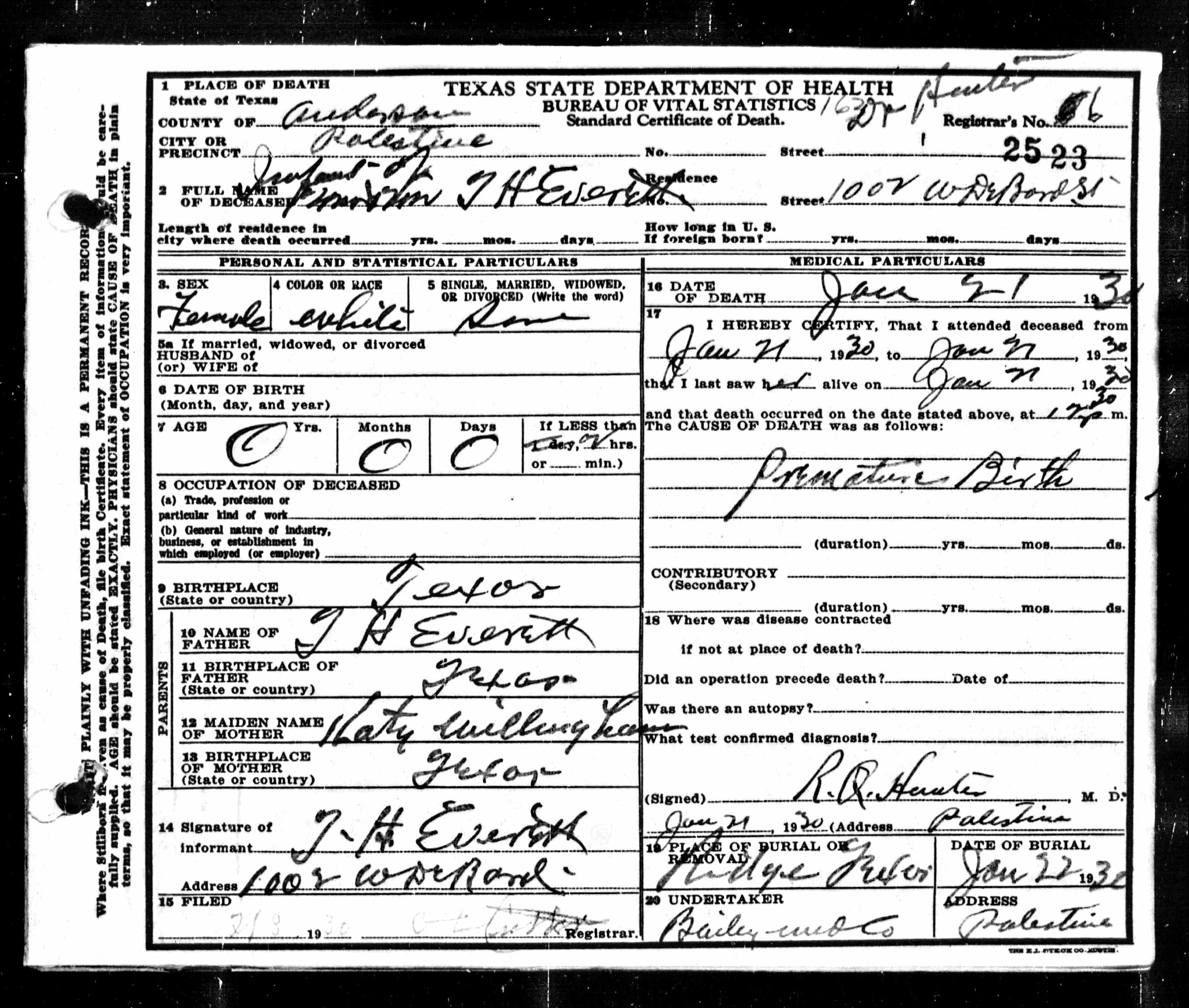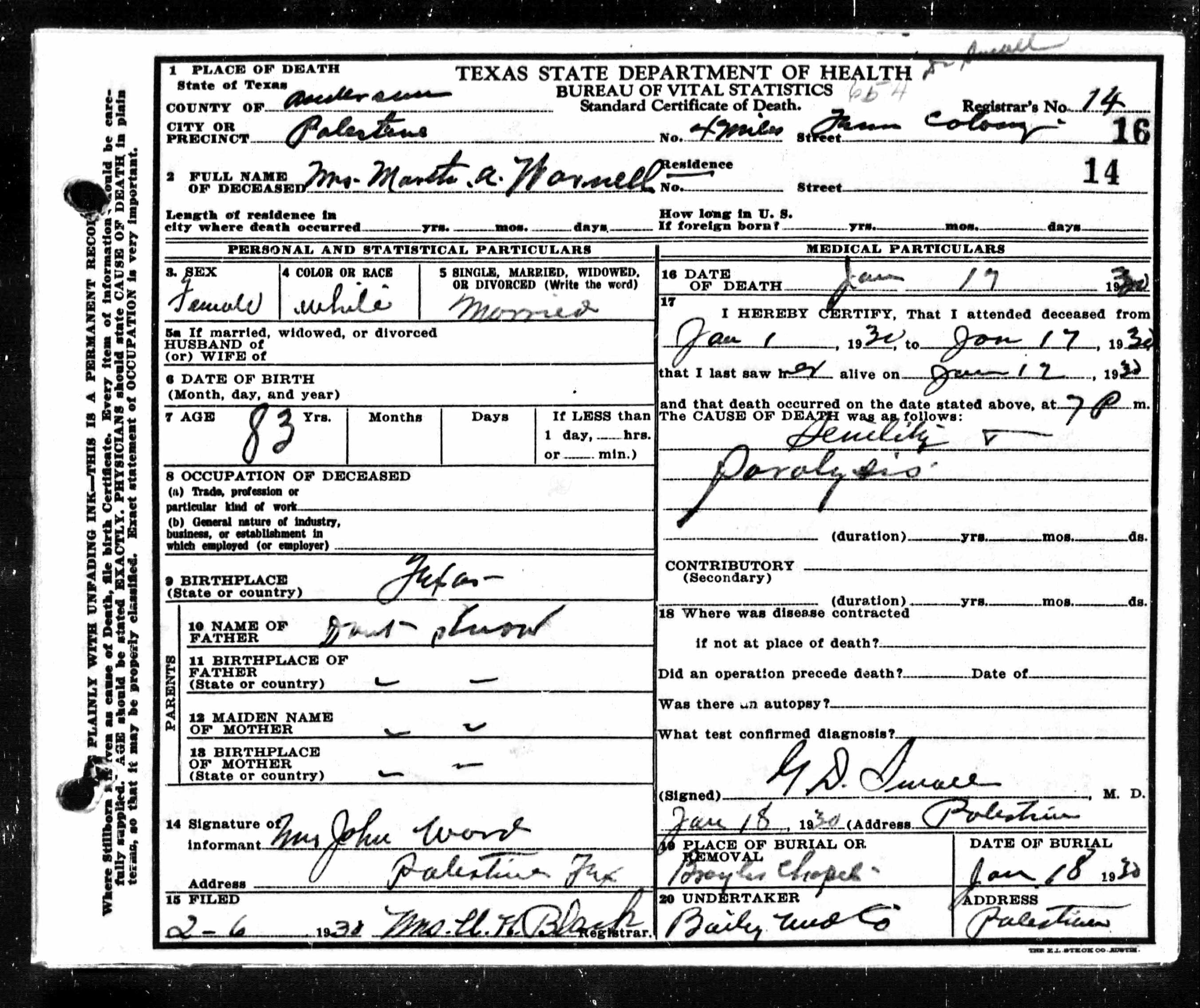 Death certificates for people born, married or died in Anderson County.