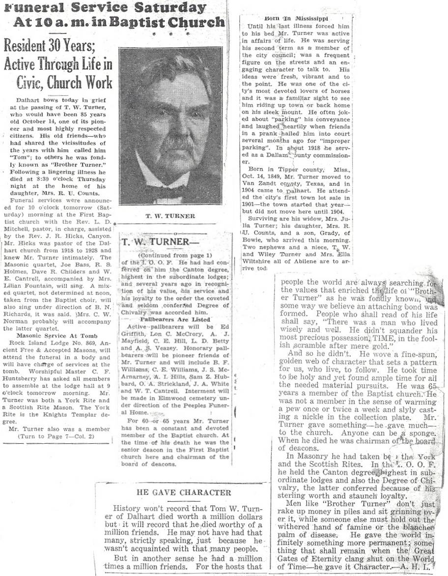 Do you have obituaries of folks from Dallam County?T W Turner