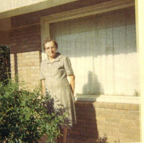 Freddie Mae Hailey Inman on the  porch of the home built by E.B. Inman, Sr. in Lamesa, Texas    (LGS)