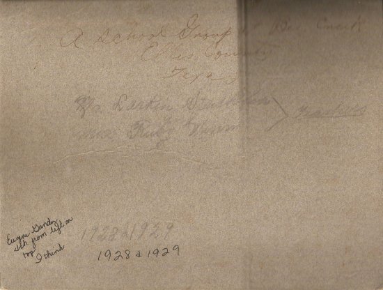 These photos were in the possesion of Attia Murphy Gandy Arnold, my grandmother. The subject of interest to us is a young man named Eugene Lawson Gandy. His location in each picture is noted on its back. The only way we know this is by comparing this picture to other known pictures of him. He was born 31 Jan 1916 in Texas and died of typhoid fever 8 Apr 1935 in Kaufman County, TX. He is buried in the Pyle Prairie Cemetery in Lively, Kaufman County, TX. He is found on the 1930 Census for Ellis County in the household with his Step-father Elbert Leroy (Lee) Arnold, mother Attia Virginia (Pat) Murphy Gandy Arnold, half-sister Mary Elizabeth (Maribeth) Arnold, grandparents Henry L. Murphy and Mary (Molly) Hill Murphy. He is found on the 1920 census for Red River County in the household with his Murphy grandparents and his mother then named Attia Gandy. His mother is not listed as a widow. Eugenes father was known as Frank Gandy, but the marriage license shows either T. H. Gandy or F. H. Gandy. Mary Elyzabeth Arnold was my mother. She was born 3 Apr 1927 supposedly in Italy, TX., but we cannot find a record of her birth. She died 21 Jun 1982 in Jasper County, TX. She was married to Norman Stewart Martindale. Regards Judith Martindale Johnson |