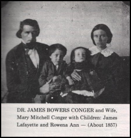 Dr. James Bowers Conger and wife, Mary Mitchell Conger, with children: James Lafayette and Rowena Ann - (about 1857)
