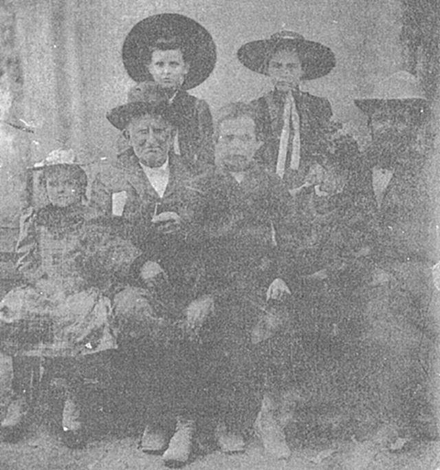 In the Photo from left to right standing: Nancy Pearson, Emma Pearson. Seated from left to right: Sarah Pearson, Joel A Dixon, Marvin Pearson, Bessie Pearson, & William Ward Wesley Pearson.