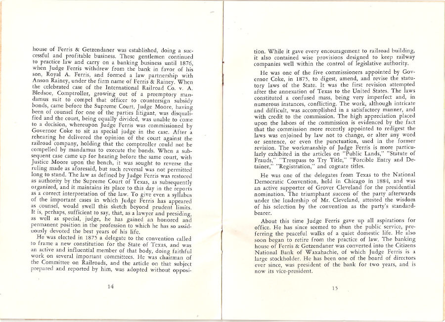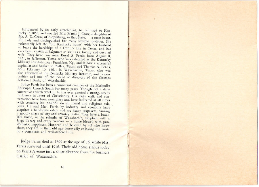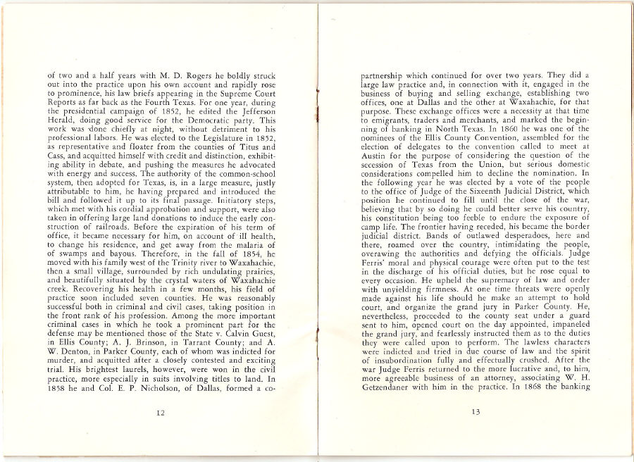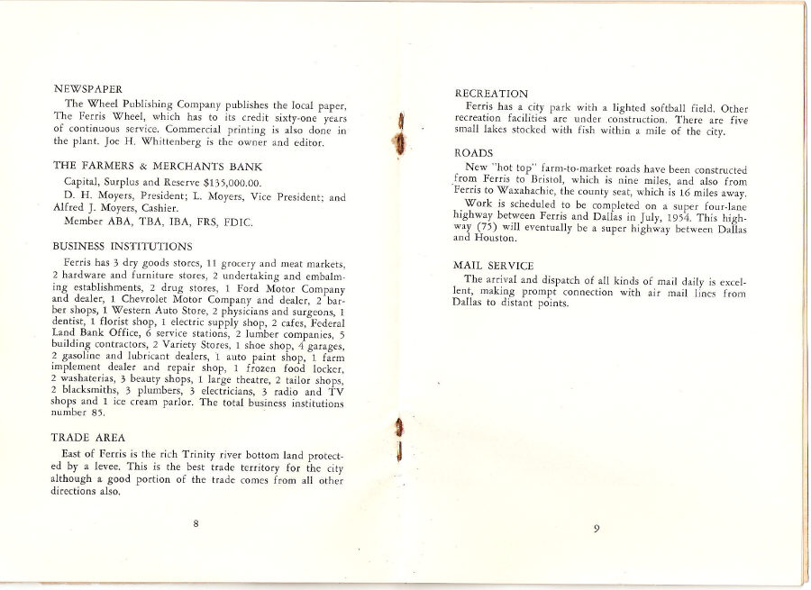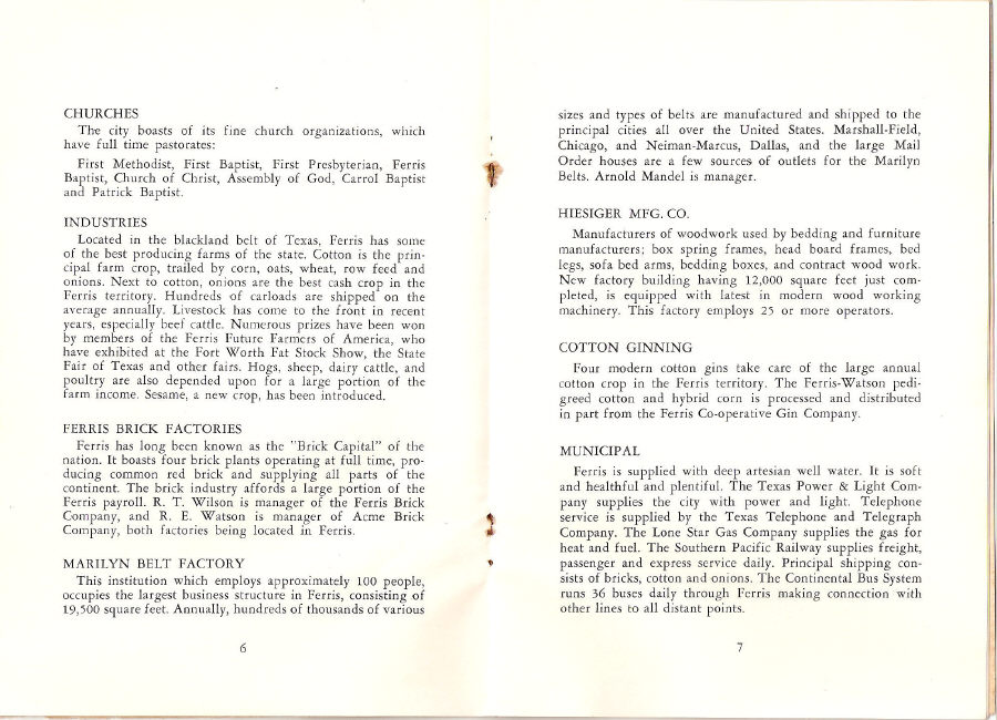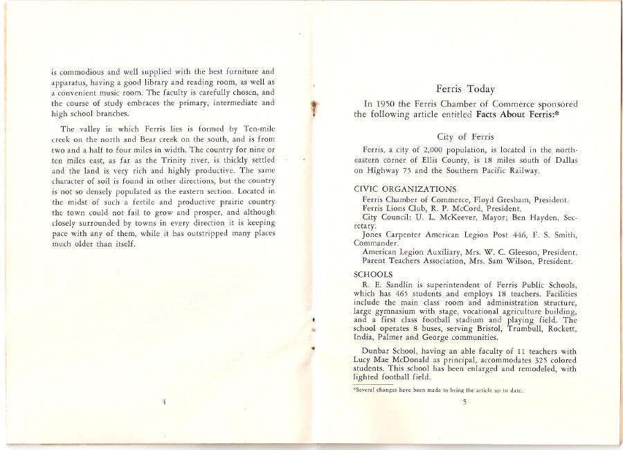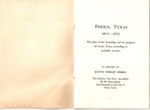 Ferris, Texas 1874 - 1953