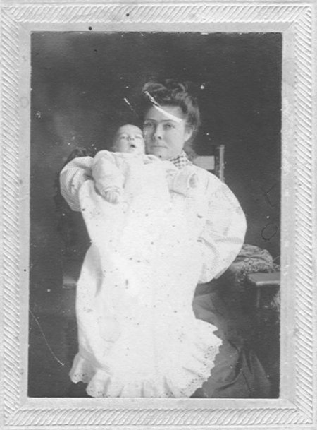 Aunt Nettie [HOWELL] LOVE and Robert, grandbaby, written on back of picture. Probably taken around 1915 in Fort Worth, Tarrant County, TX.