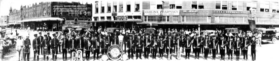 The Lone Star Band on the Waxahachie Courthouse Square, 1917 The band was the official Band for the United Confederate Veterans Reunion in Washington, D. C., and made the trip by automobile, which the band chose for the adventure of seeing the nation from an open automobile. James King was director, he created a band known throughout the state. Click here to view image full size. Photo courtesy of Ellis County Museum, Inc. Used with permission. |