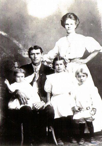 Stonewall Jackson "Jack" Gathings (b. 1876) with his wife, Ada Viola Martin Gathings and their children, Zora Lea, Albert Douglass, and Lucile Imogene.