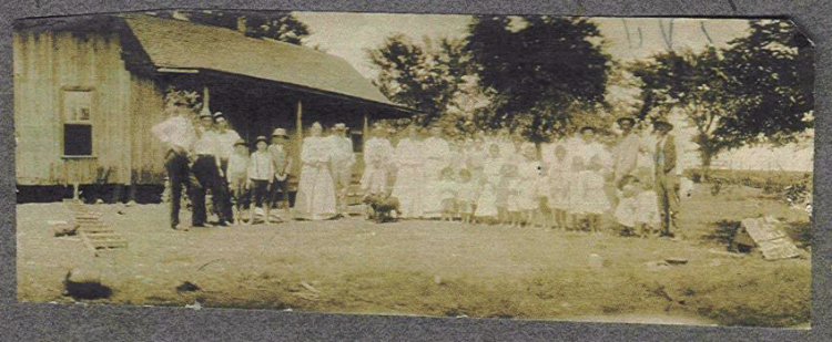 This is a picture of a Davis-White Reunion in Waxahachie around 1900. John Wilson and Levicia Cavender DAVIS came to the Ellis Co. area with other Davis families and the White family from Union Co. GA in the 1880's. We can only identify three people in the photo. The first man on the left is probably my grandfather Francis Marion Davis. The man with the long white beard and the lady to his left may be John W. and Levicia Davis. John's children: Charles Washington Davis is buried in Waxahachie City Cem and James A. is buried somewhere in the area. The youngest son George L. married Julia A. WHITE and they are buried near Sayre, OK. John W. and Lavecia are buried in Edgewood Cem. in Lancaster, TX.