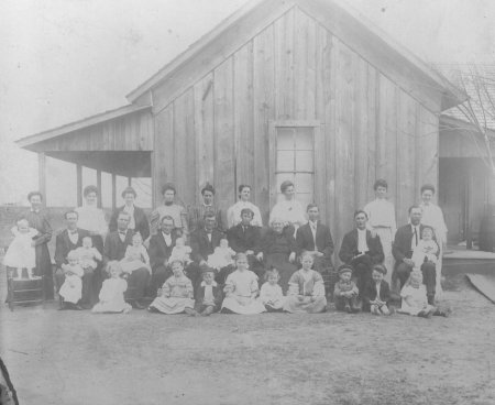 Harriet Malvina (Campbell) Smithwick & Family She was Mrs.Steven Dewitt Smithwick and is buried in the cemetery in Italy. The only people we know for sure in the picture are: (starting from the far right and going left) Standing: Alice M. (Smithwick) Chenoweth and sitting, Samuel A. Chenoweth and their children, Annie & Ethel Next couple standing: Ora M. (Chenoweth) Smithwick and sitting, William R. Smithwick. I'm not sure of their children's names. Young man sitting is Henry Smithwick who taught school in Italy. Elderly lady sitting is his mother Harriet M.Smithwick ...that is all we can identify. There were fifteen Smithwick children. Smithwick siblings married a Chenoweth brother and sister, and a Graves brother and sister. Other families that married Smithwicks were Styles, Knights, and Hughes. I would like to hear from anyone who can tell us who the other people in the picture are. Patti Smithwick |
