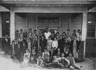 South Prong School Photo submitted by Susie Toal South Prong was a community near Waxahachie. Exact date of picture is not known, but it is probably around 1919. In the back row, the fifth person from the right is Ethyl Kathryn Toal (1906-1962). [David Vantreese had submitted the same photograph that was identified as being from 1923.] |