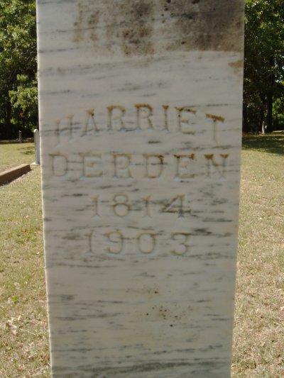 This is the front of the marker of George W. Derden and Harriet Abercrombie, his wife. Side views give data. My 2nd great grandparents.