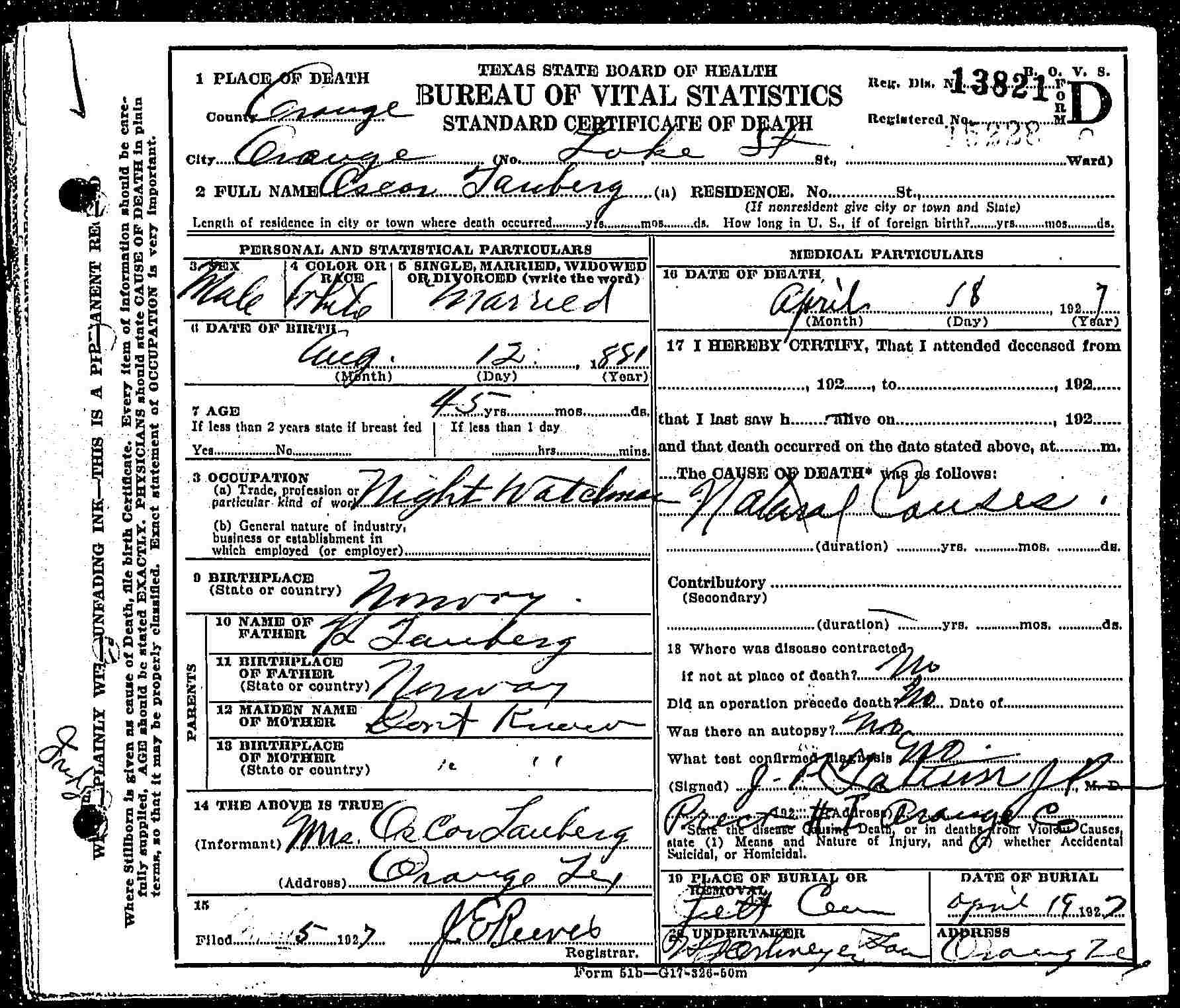 | death place: | Orange, Orange, Texas |