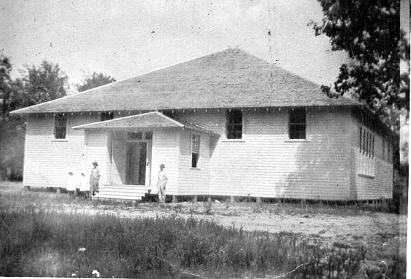 Cuthand School abt 1910. Tom Latimer on left with his two daughters, Delene and Bernice. On right is James Wesley Mauldin. Had just finished painting the School House. Thank you, Tommy Mauldin