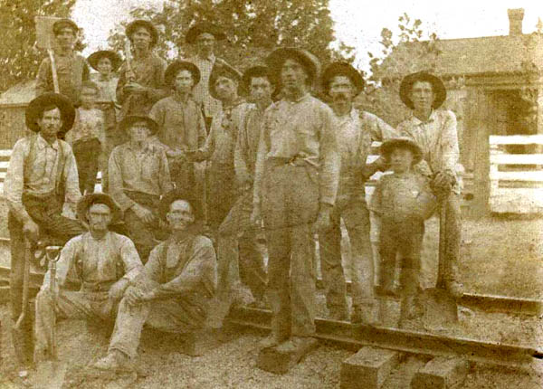 Picture was photographed in Red River County, exact location unknown. It appears to be of a Railroad crew. But, then there is a couple of small boys? Does anyone may recognize the people/scene?