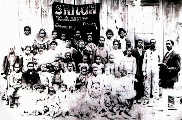 under the sign. 2nd row, 5th student, Naom "Nona" Baty