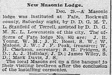 Newspaper Articles about the Rockwall County Lodge