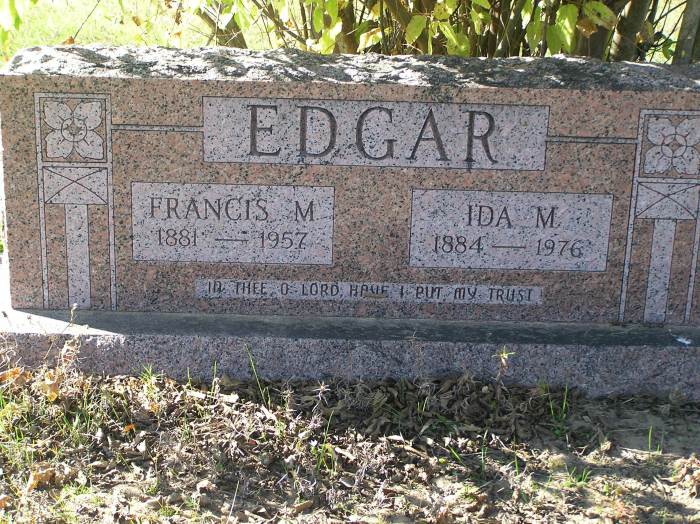 Edgar Francis M 1881 1957 DS with Ida M;  see death certificate