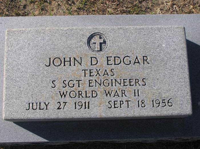 Edgar John D 7-27-1911 9-18-1956 TX S Sgt Engineers WWII