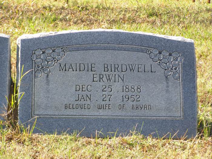 Erwin Maidie Birdwell 12-25-1888 1-27-1952 W/o Bryan
