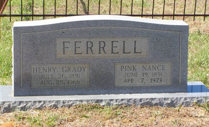 Ferrell Pink Nance 6-19-1891 4-7-1973 DS with Henry Grady