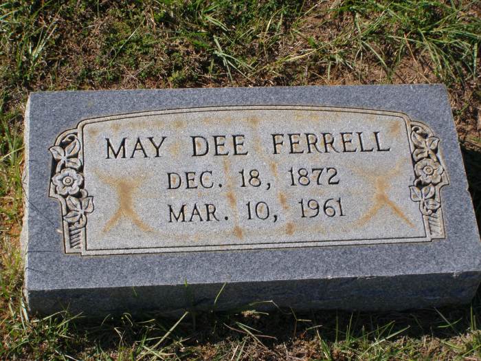 Ferrell May Dee 12-18-1872 3-10-1961 Family Stone     Death Certificate