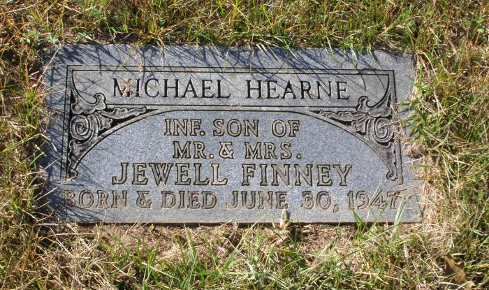Finney Michael Hearn 6-30-1947 6-30-1947 Family Stone   Inf S/o Mr & Mrs Jewell Finney
