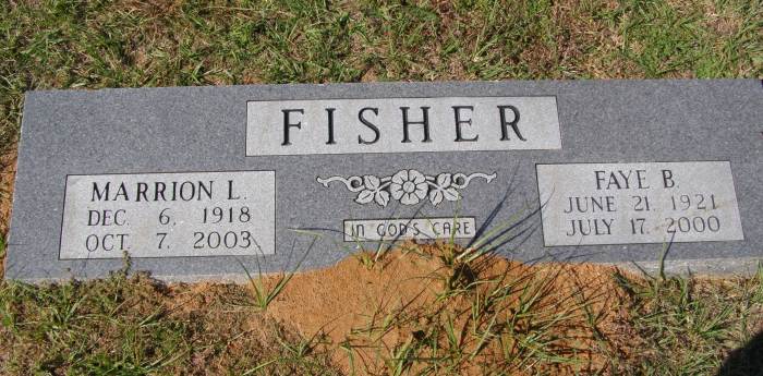 Fisher Faye B 6-21-1921 7-17-2000 DS with Marrion L