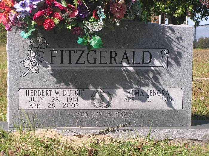 Fitzgerald Herbert W "Dutch" 7-28-1914 4-26-2002 H/o Alma Lenora