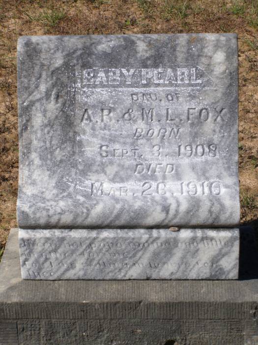 Fox Baby Pearl 9-3-1908 3-26-1910 D/o A R & M L