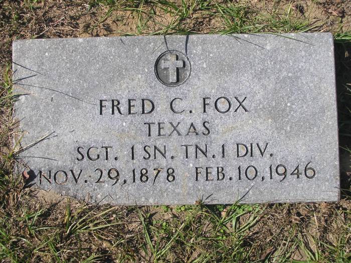 Fox Fred C 11-29-1878 2-10-1946 DS with Margaret   TX Sgt 1 SN Tn 1 Div