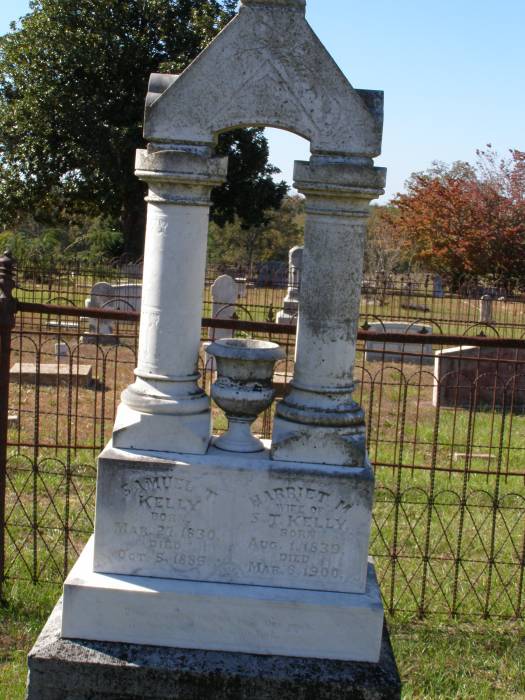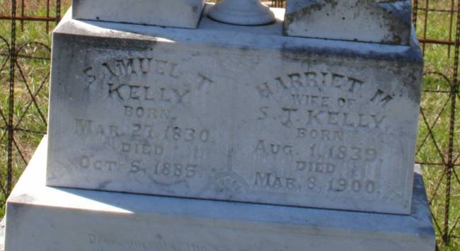 Kelly Samuel T 3-27-1830 10-5-1885 H/o Harriet M       Pic #2    Per Ronald Wade - Samuel T. J. Kelly, born in Ga., the daughter of Margaret Kelley (born 1802 Ga.).  He married in 1860 in Upshur Co., Tx. to  Harriet M. Mings (1839 ? 1900).  Their children included Sallie E. Kelly born about 1862, Thomas J. Kelly born about 1865, Harriet J. Kelly born about 1867, Maggie E. Kelly born about 1872.