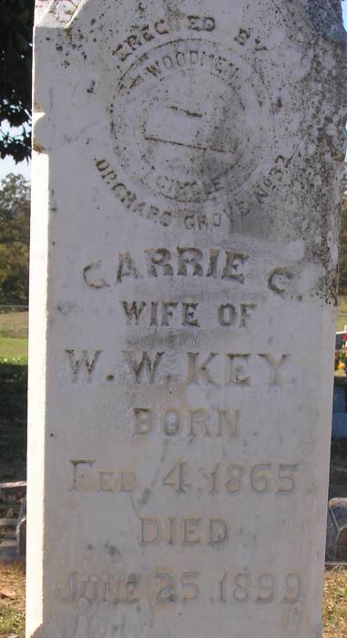 Key Carrie C 2-4-1865 6-25-1899 W/o WW Key    TS with John C & WW      WOW     Pic #2