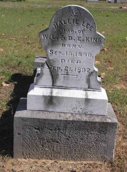 King Hallie Lee 9-15-1890 9-21-1892 D/o W L & D E