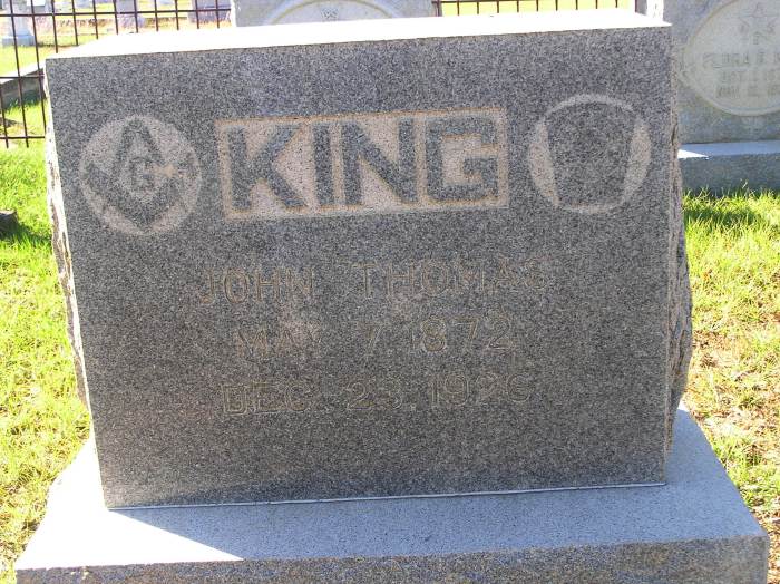 King John Thomas 5-7-1872 12-23-1926 Per Ronald Wade - John Thomas King Sr.,  born in Texas the son of John Washington King (1834 ? 1879) and Amanda Jane Lowry (1848 ? 1924).  He married Cairo "Kate" V. Beck (1884-1976) and their children included John Thomas King Jr. (1903 ? 1970), and Irma Nevill King (1907-1987).