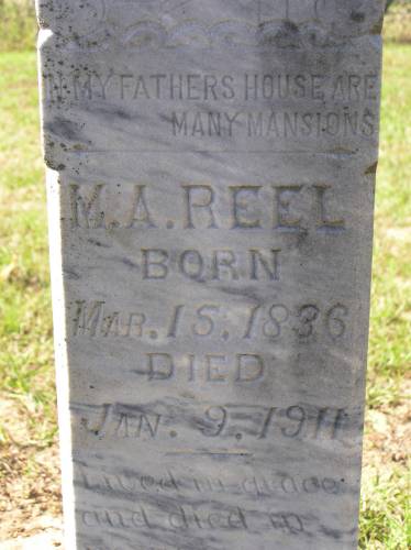 Reel M A 3-15-1836 1-9-1911 Pic #2    Per Ronald Wade - Mary A. Reel, born in Ga., she married Daniel M. Reel (born 1837).   They had three children including Emily Ella Reel (1871 ? 1910).