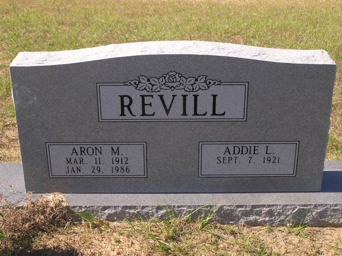 Mary Ella Revill born about 1867, William Monroe Revill born about 1869, Elizabeth Revill born about 1877, Thredonia Revill born 1879, Hattie Revill (1881 ? 1967), James Ezra Buddy Revill (1884 ? 1959), Henry Joseph Revill born about 1888, Aron Revill born about 1890, and Hubert Revill (1895 - 1980).