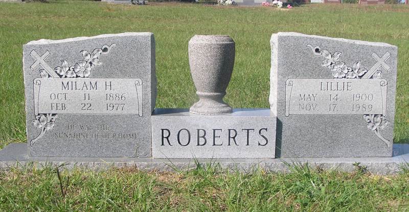 Roberts Milam H 10-11-1886 2-22-1977 DS with Lillie