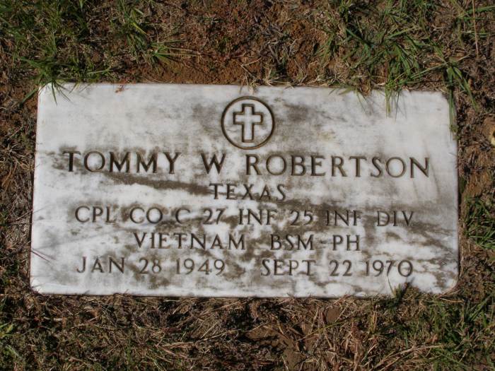 Robertson Tommy Wayne 1-28-1949 9-22-1970 TX Cpl Co C 27 Inf 25 Inf Div Vietnam BSM PH