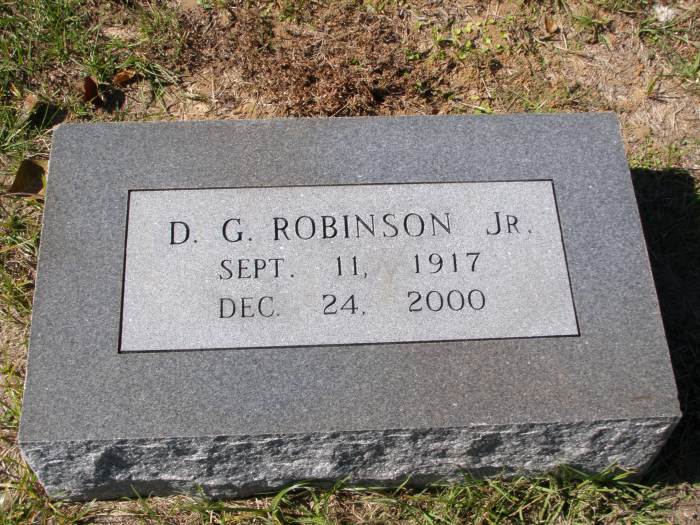 Robinson D G Jr 9-11-1917 12-24-2000 Family Stone