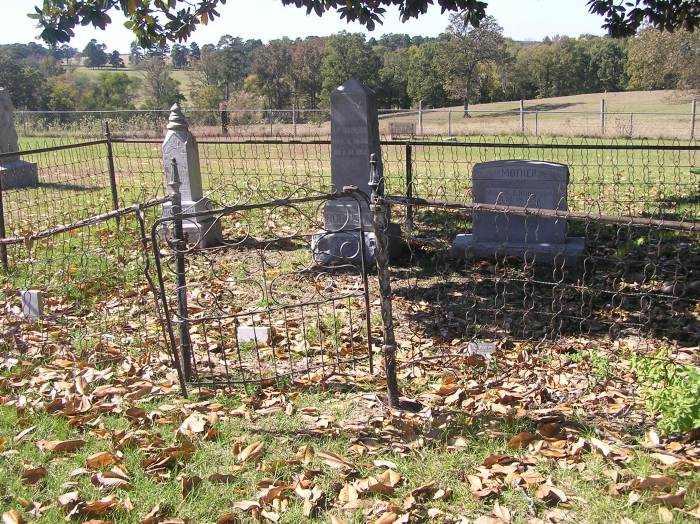 Robinson J P 3-4-1844 7-14-1914 Family Plot  Per Ronald Wade - James Knox Polk Robinson, born in Tishomingo Co., Miss., the son of John Robinson (1805 ? 1888) and Delilah Eoff (1814 ? 1880).  He married 31 Dec 1877 in Hardin, Tenn. to Maggie E. Robinson (1854-1934).  Their children included Fannie R. Robinson born about 1869, W. H. Robinson born about 1871, Delilah Robinson born about 1873, John Robinson born about 1876, Robert Robinson born about 1878, Dorsey Robinson born about 1879, Nellie I. Robinson born about 1883, Minnie Robinson born about 1888, Eddie Robinson born about 1891, and Mary Robinson born about 1895. During the Civil War he enlisted June 1862 in Co. D, 6th Alabama Cavalry under Capt. Dixon and Col. Moreland, and under Gen. Forrest.  He surrendered in Apr 1865 in Nashville, Tenn. "to the Federals" he wrote in his Confederate Pension Application for which he and later his widow were approved.