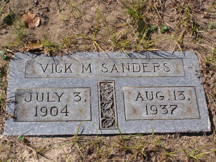 Sanders Vick M 7-3-1904 8-13-1937 Pic #2       Family Stone