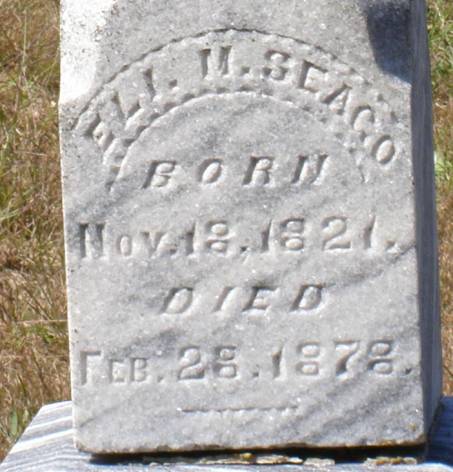Seago  Eli M 11-18-1821 2-28-1878 Pic #2   Per Ronald Wade - Coneal Eli Merrill Seago, born in Walla Walla, Pickens, Now Oconee, SC, the son of Benjamin Wharton Seago (1792 ? 1857) and Sarah Morgan (1784 ? 1857).  He married in 1858 to Francis J Peteet (1826 ? 1880). Their children included Eli Merrill Seago (1864 Ala. ? 1935 Collingsworth, Tx.).  He and his wife were Charter members of the First Baptist Church in 1876 in Big Sandy, Upshur, Texas.   During the Civil War he enlisted as a Captain on and received his Commission in Company F, 20th Infantry Regiment Georgia on 18 Jun 1861. Promoted to Full Major on 29 May 1863.  Promoted to Full Lieutenant Colonel on 2 Jul 1863. An archive of letters between Col. Seago and Ga. Gov. Joseph Brown offering to create a Company of men for the Confederate Army is maintained in the Ga. State Archives as "Governor's Incoming Correspondence, Civil War? Governor Joseph E. Brown of Georgia. Morrow, Georgia: Georgia State Archives." He was a Veteran of the Mexican American War as well.  Volunteered at Austin Texas as a Private in Captain John J. Grumbles' Company, at the age of 24. He went to Texas after his brother died in Matamoras Mexico during the Mexican War on 6 Sep 1846. Enlisted at Austin TX on 24 Sep 1846 and was discharged on 23 Sep 1847. Texas Archives: Texas Veteran's in the Mexican War by Charles D. Spurlin page 147 #42.  He bought much of the land around Big Sandy Creek and built the Seago Box Factory, saw mill, and store which were in existence in 1876.