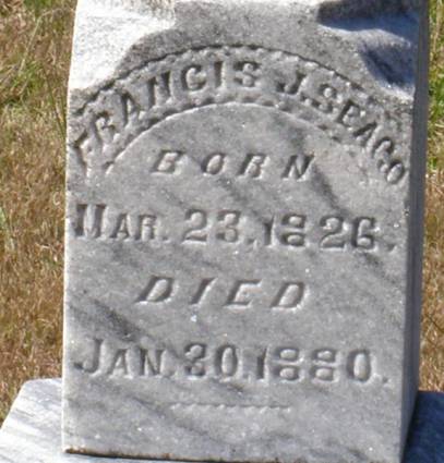 Seago Francis J 3-23-1826 1-30-1880 Pic #2   Per Ronald Wade - Francis J. Peteet Sligh Seago (1826 ? 1880), born in Ga., the daughter of Simeon Peteer (1790 ? 1860) and Matilda Jones (1807 ? 1901).  First she married in 1842 in Meriwether Co., Ga. to Emanuel Sligh (1807 ? 1856).  Their children included John Solomon Sligh (1843 ? 1903), Simeon Sligh (1846 ? 1904), Louzan Frances Sligh (1848 ? 1903), Mary Matilda "Mattie" Sligh (1850 ? 1938), and James M. Sligh (1852 ? 1922).  Following Mr. Sligh's death she married in 1858 to Coneal Eli Merrill Seago (1821-1878).  They had a son,  Eli Merrill Seago (1864 ? 1935).
