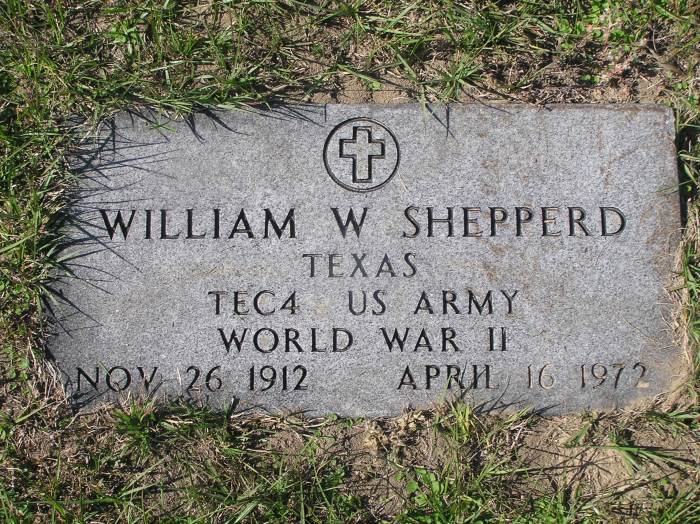Shepperd William W 11-26-1912 4-16-1972 TX Tec 4 US Army WWII