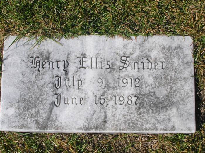 Snider Henry Ellis 7-9-1912 6-15-1987 Family Stone