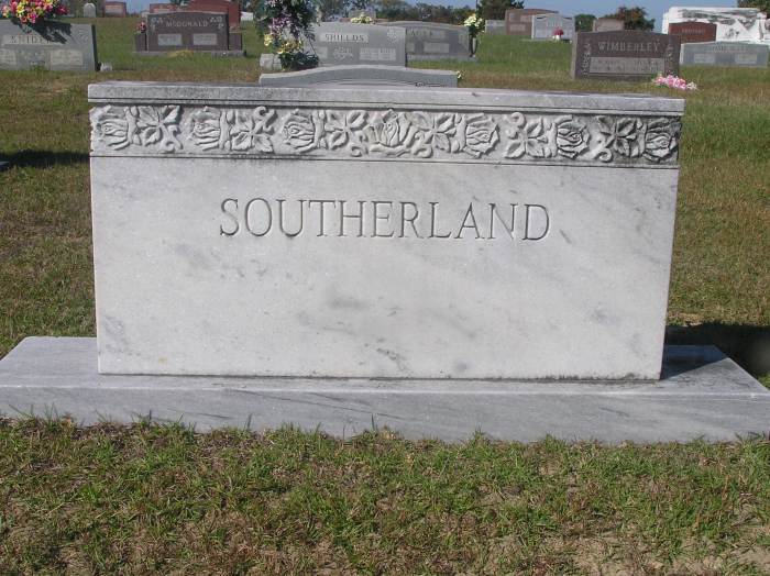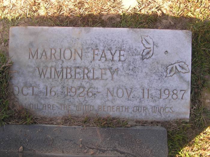Southerland Marion Faye Wimberley 10-16-1926 11-11-1987 Family Stone
