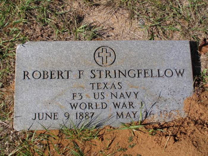 Stringfellow Robert F 6-09-1887 5-26-1962 TX F3 US Navy WWI;  H/o Nell Stringfellow