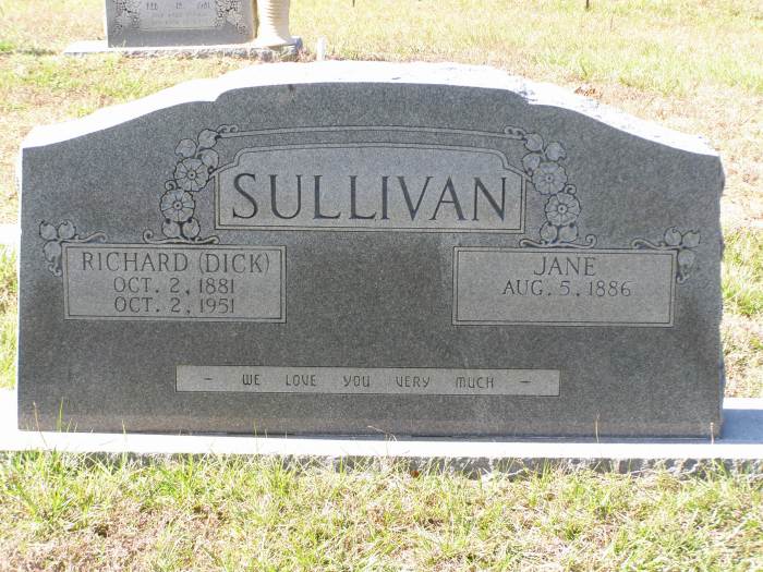 Sullivan Richard "Dick' 10-2-1881 10-2-1951 DS with Jane;  see death certificate