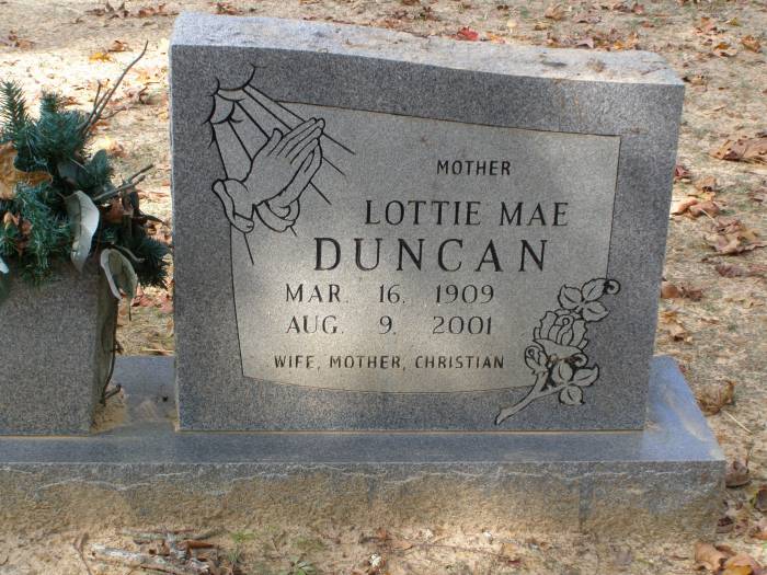 Duncan, Lottie Mae Mar 16, 1909 Aug 9, 2001 Mother