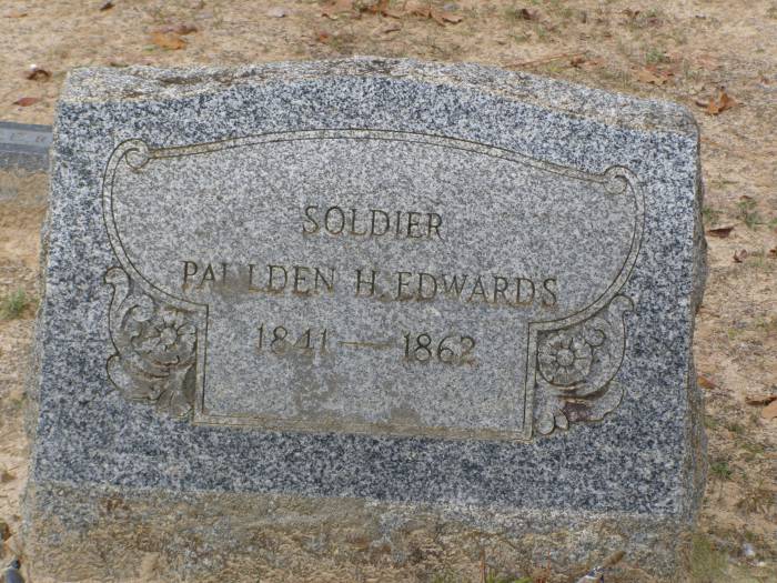 Edwards, Paulden H 1841 1862 Per Ronald Wade - Paulden H. Edwards, born in Wilson Co., Tennessee, the son of John King Edwards (1813 ? 1869) & Elizabeth H. Billings (1813 ? 1899).  During the Civil War he served in Co. G & K, 17th Regiment, Texas Cavalry (Moore's).